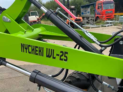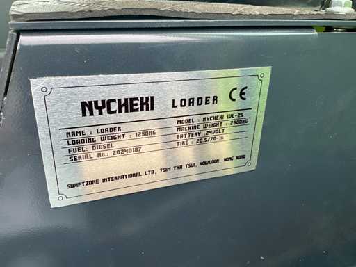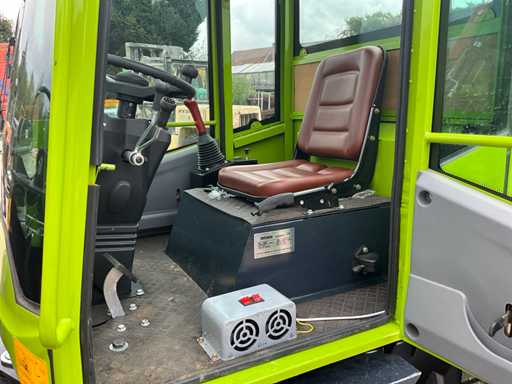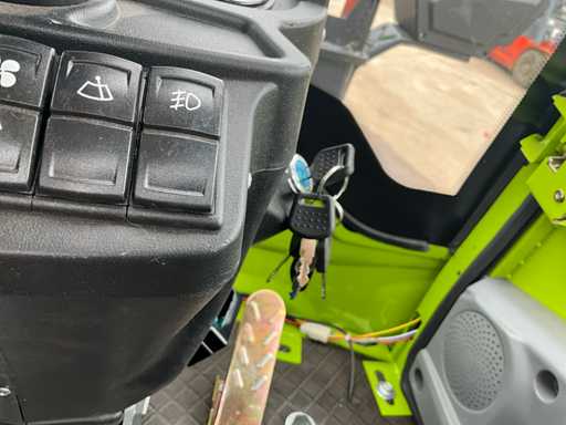 Including fork carriage + forks. Payload 1250kg. Tire size: 20.5/70–16. Rear view camera.