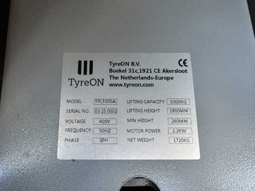 2025 TyreON TPL5500A - 4 Post Alignment Lift 5T with Air Hydraulic Roller Jack (2.5T) and LED Lane Lighting