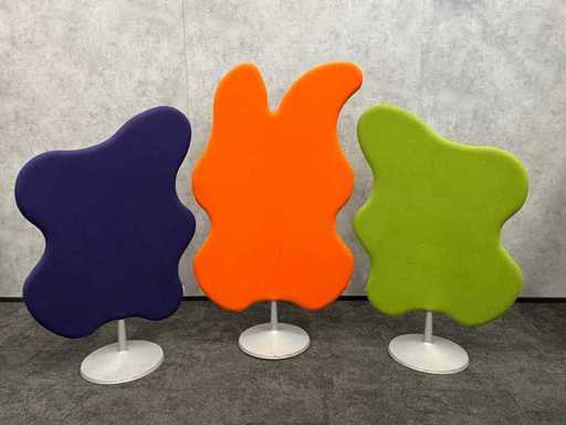 Dim. Purple room divider approx. height 180 cm and width 115 cm. -- Orange approx. height 208 cm. and width 117 cm. -- Green approx. height 118 cm. and width 115 cm. --- new price per piece approx. €1200,-