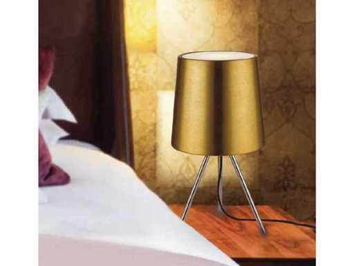 Italian design table lamps suitable living rooms, bedrooms, studies or playrooms, as well as in workspaces, reception areas or in the showroom. The lamp is equipped with 3 silver-colored feet and a gold-colored lamp shade, suitable for use with any light source of type E14 (not included). Product features: I-MARLEY/L Number of light sources: 1, type E14 Dimension approx.: 25X43.5CM Light beam approx 360 degrees. Connection: 230 Volt. Color: White. Lot value: €356,-