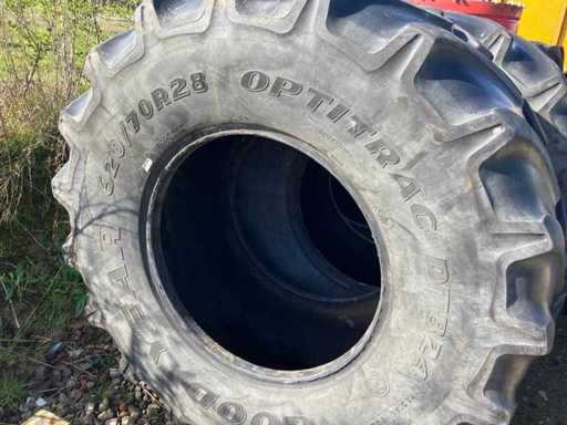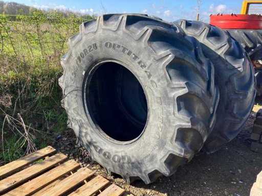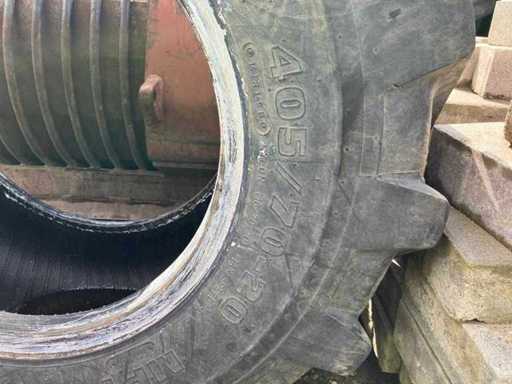 Consists of: 1x Mitas 405/70-20, 2x Good Year 620/70R28 Optitrac, 1x Michelin 62-/70R28, 2 pieces 13.0/ 15-16 on rim.