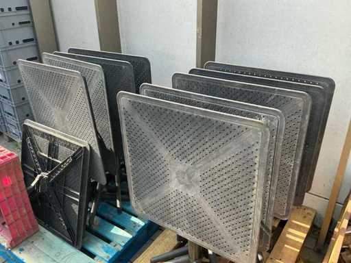 Lot consisting of 69 terrace chairs with matching folding table. Due to renewal of equipment.