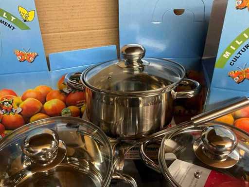 4 x cooking pot with glass lid + 1 x saucepan, suitable for all fires, including induction