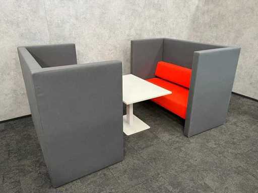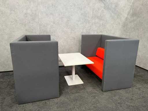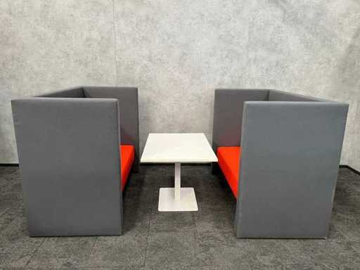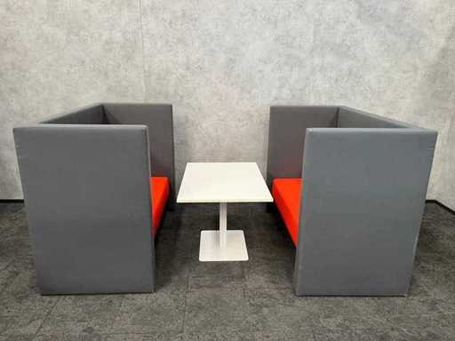 Dim. Sofas approx. HxWxD 138x180x90 cm. -- Dim. Table approx. HxWxD 75x120x80 cm.