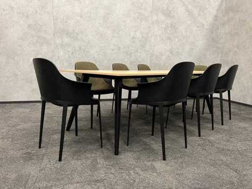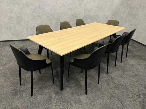 lot consisting of 8x Alias Elle design chair and 1x conference table with black steel frame and oak look melamine table top