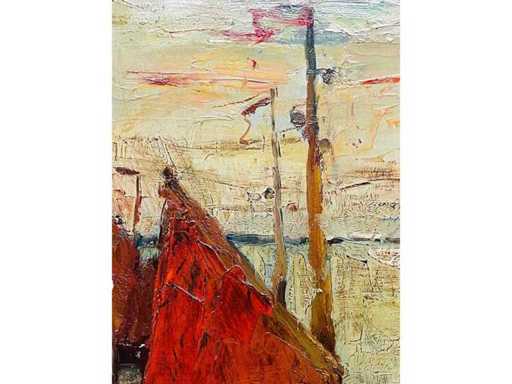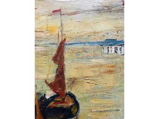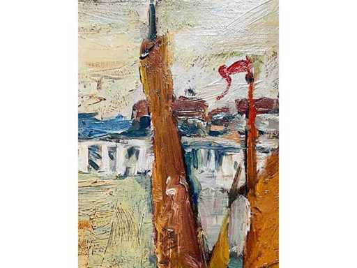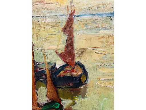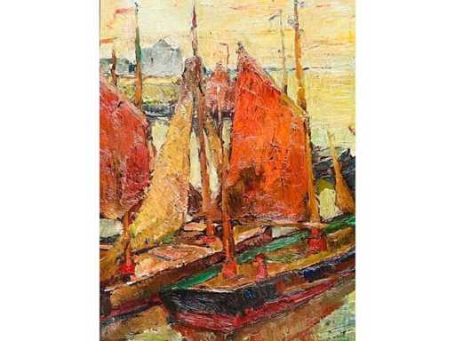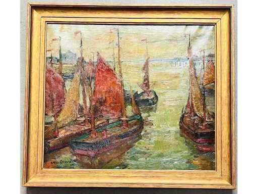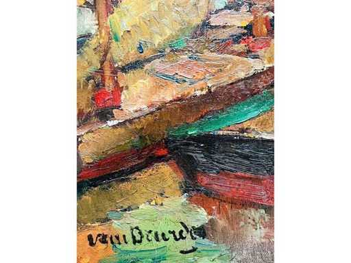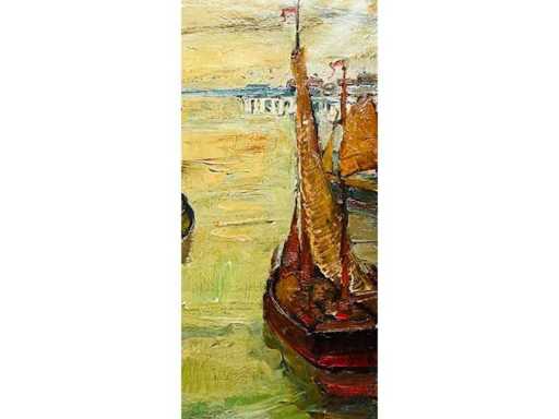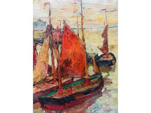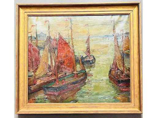Alphonse Van Beurden - boats at the quay in Antwerp - oil on canvas