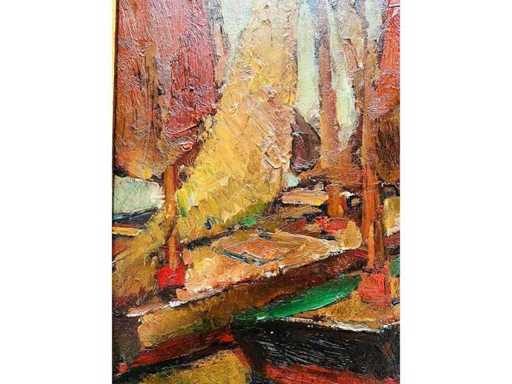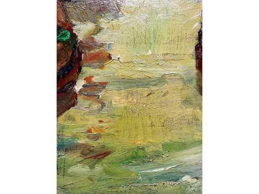 Large and original work - framed in beautiful wooden frame - gallery price: 1700 euros - beautiful bright colors