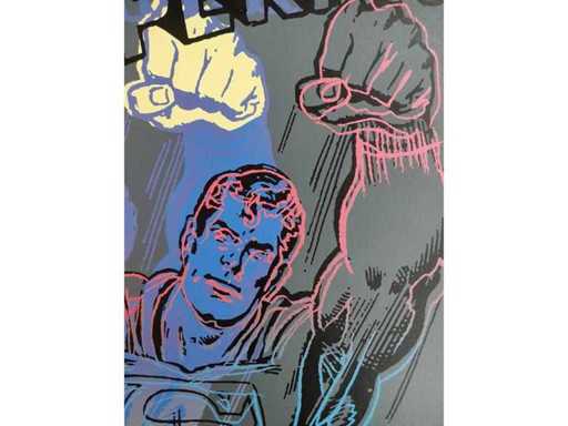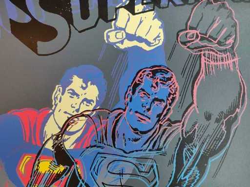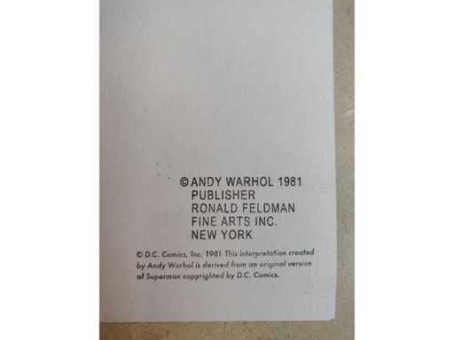 Stamp on back : This interpretation made by Andy Warhol is derived from the original version of Superman copyrighted by D.C. Comics ".