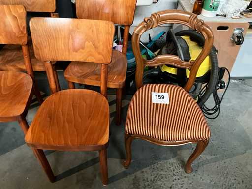 Consisting of 6x wooden + 2x wooden with fabric seat