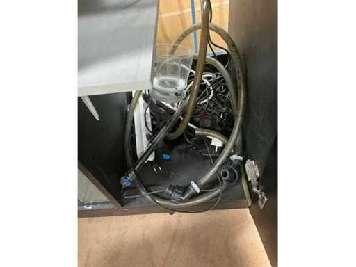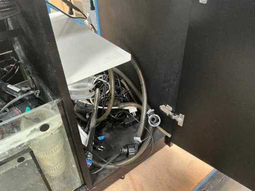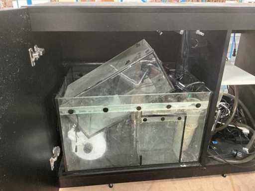 Consisting of 1x aquarium base cabinet Red Sea with dimensions approx. 120 x 58 x 90cm, BlueMarine chiller 800 and diaphragm pump Aqua Medic and various products.