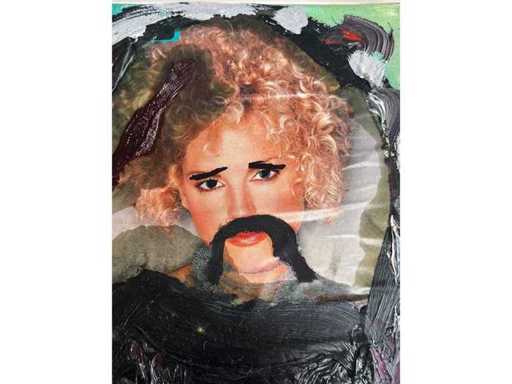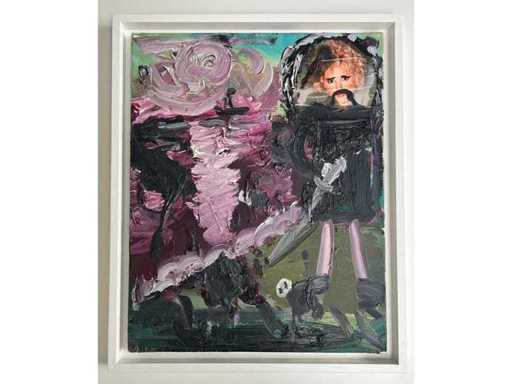 framed in white wooden frame - contemporary top artist from the stable of Tim Van Laere Gallery in Antwerp - gallery price: 3000 euros - Armen Eloyan is an Armenian-Swiss artist. He makes expressive paintings and sculptures with cartoon-like figures, in which humour and dark themes come together. His work has been shown at Tim Van Laere Gallery, among others.