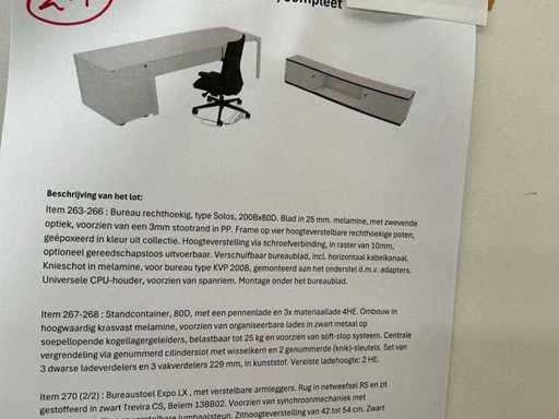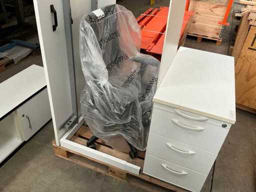 With drawer unit, swivel chair and 2-door cupboard