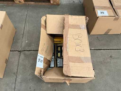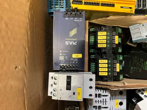 BR-automationB&R X20 CP1484 Rev. F0 CPU 1x; Siemens Power Switch version S00 for motor protection 4x; Puls PULS DIMENSION Q Switched Mode DIN Rail Power Supply, 380 → 480V ac ac Input, 24V dc dc Output, 20A Output, 480W 1x; Murr Elektronik Murrelektronik Limited MIRO TR Series Solid State Interface Relay, 48 Vdc Control, 0.5 A Load, DIN Rail Mount 11x; Siemens Power Relay, AC-3, 8.4 A, 4 kW / 400 V, 3-pole, DC 24 V, auxiliary contacts: 1 NC, screw terminal connection 5x; Siemens Power Relay, AC-3 9 A, 4 kW / 400 V 1 NC, DC 24 V 3-pole 4x; Murr Elektronik Murrelektronik Limited Electronic Circuit Breaker 1x; Murr Elektronik Murrelektronik Limited Electronic Circuit Breaker 1x; BR-automation B&R Automation X20 AI 4622 Analog Input Module 1x; Siemens MINIZED, switch-disconnector with fuse 1x; BR-automation B&R Input module X20 DI9371 Rev.G0 4x; BR-automation B&R output module X20 DO9322 Rev.I0 4x; Siemens Residual current operated circuit breaker 1x; PILZ PNOZ mi1p 8 input 3x; Murr Elektronik Murrelektronik Limited Interface Relay, DIN Rail Mount, 24V dc Coil, SPDT, 1-Pole, 6A Load 6x; Siemens Residual current operated circuit breaker, 2-pole 1x; Puls PULS MiniLine MLY Switched Mode DIN Rail Power Supply, 100 → 240V ac ac Input, 24V dc dc Output, 2.1A Output, 50W 1x; PILZ PNOZ m1p base unit 1x; Siemens circuit breaker 400 V 10 kA 1x; Releco Releco Plug In Power Relay, 24V dc Coil, 10A Switching Current, DPDT 2x; Siemens Miniature circuit breaker 230/400 V 10kA 1x; BR-automation B&R Automation X20 BM 11 Bus module 2x; Siemens cable protection switch 230/400 V 10 kA 1x; Schaffner AC/DC EMI Filter 1-Ph 250VAC 20A 1x; Hager Socket with earth, raised touch safe 1x; General electric Din rail socket 1x; Lutze MPE6 - Mounting module with soldering terminals for free component fitting of assembly parts 1x; Lutze LD-V1-0476 - Universal Suppressor Module 1x.