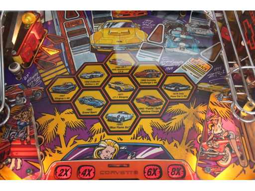 1-4 players, Dot Matrix, electronic, theme cars Chevrolet Corvette, Multiball, with various light and sound effects