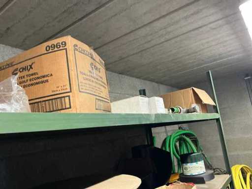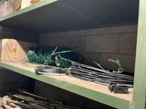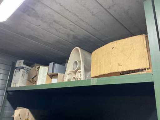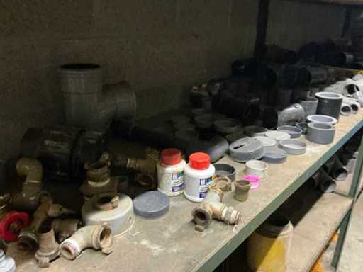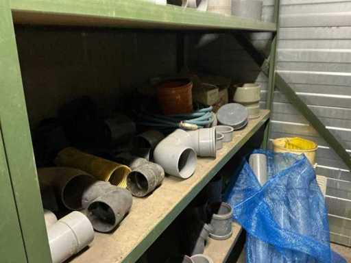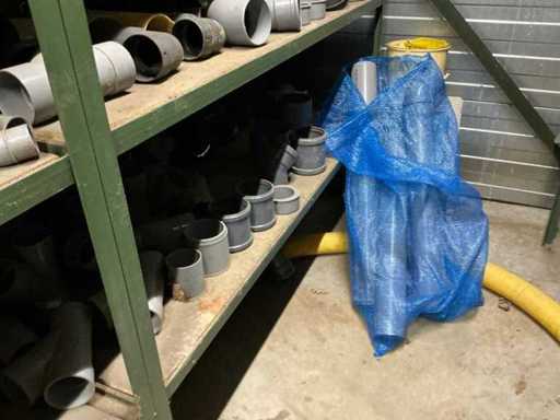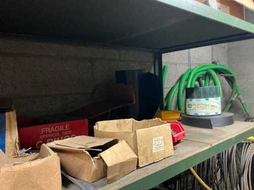 including water hoses, PVC pipe fittings, spray nozzles, .... being all contents locally, including 4 welded shelves 70x180xH247cm, buyer must take everything with him