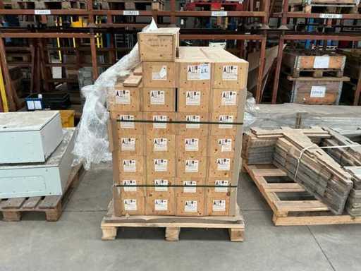 - In 28 wooden boxes.