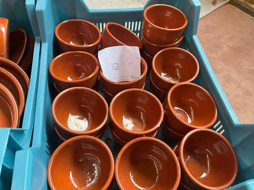 Approximately 50 pieces, diameter 8.5 cm + 12 cm, in 2x stackable crate