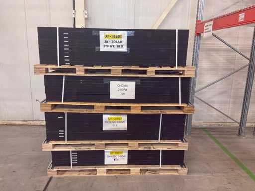 Various solar panels used. Including Ja-solar, Q-Cells, DMEGC. Different powers. Consisting of 25 pallets