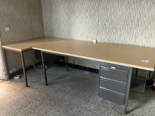 Consisting of: 3 different desks, 1 office chair, 2 high roller shutter boxes and 1 houseplant