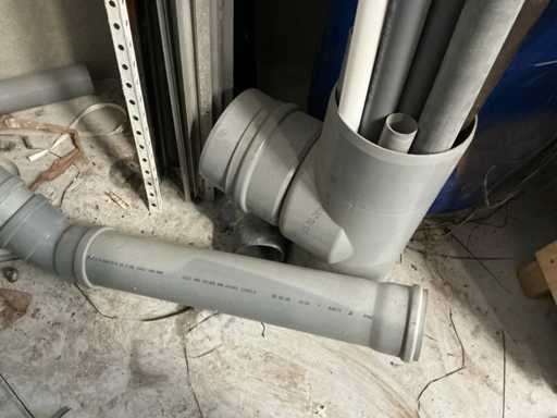 Including PVC sewer pipes, bends and connectors WAVIN, various slides and lengths up to 350cm in length, complete with various clamps and ABZ drain