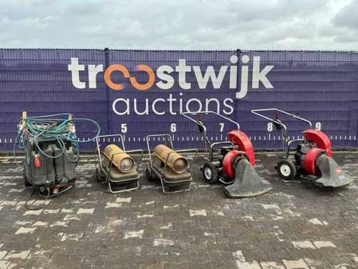 including 2x hot air cannon, 2x Toro leaf vacuum, 1x pressure washer