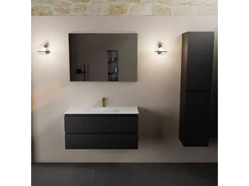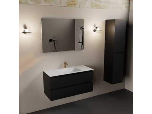 Bathroom cabinet with solid surface (artificial stone) washbasin 100cm, with tap hole, 2 drawers