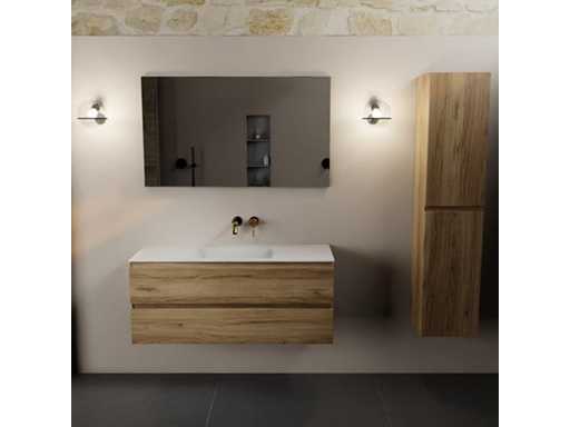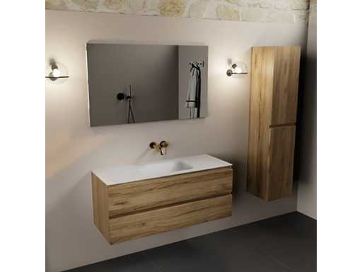 Bathroom cabinet with solid surface (artificial stone) washbasin 120cm, without tap hole, 2 drawers, top layer cabinet oak, position washbasin : center