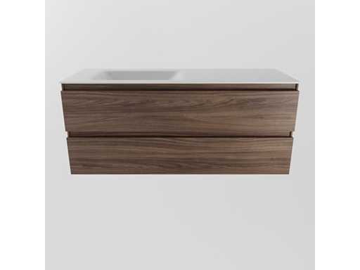 Bathroom cabinet with solid surface (artificial stone) washbasin 120cm, without tap hole, 2 drawers, top layer cabinet oak, position washbasin : left