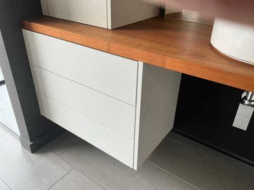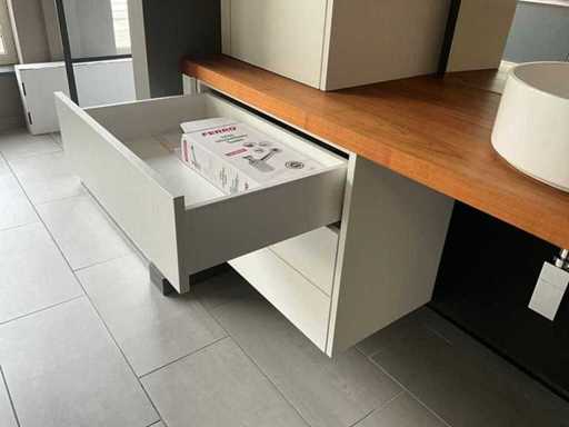 With base cabinet (3 drawers) and column cabinet, and also 2 open storage compartments.