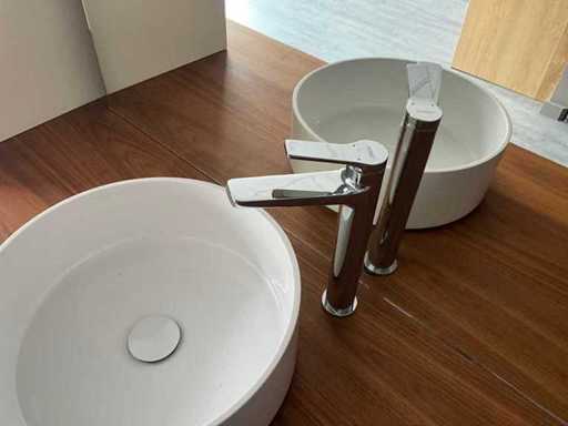 Washbasin MINIMA/SKIN round white shiny and equipped with tap Ferro S280 Quadro