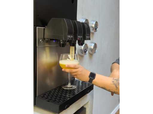 Fully functional soda vending machine – BIB Postmix system, compact and maintenance-free. Perfect for cafes, self-service stations or quick-service environments. Serves chilled drinks at the touch of a button – no ice tray required.