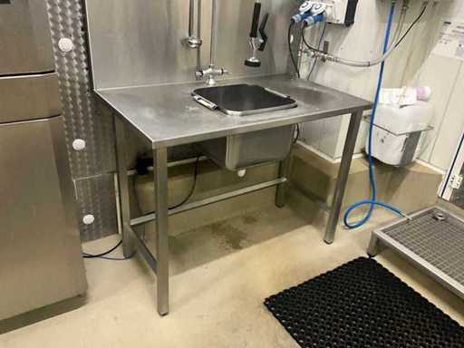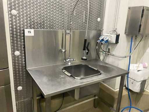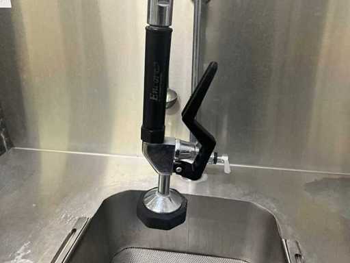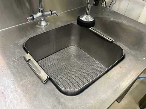 Equipped with mixer tap with flexible spray hose Encore, Removable colander and disinfection system with stainless steel drip tray/tray.