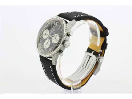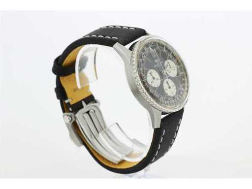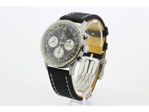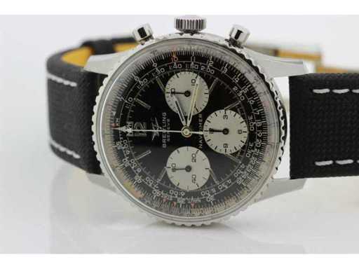 Vintage Breitling Navytimer, reference number 806, from the 60s chronograph wristwatch with black undamaged dial and new rubber Breitling strap and new Breitling folding clasp. Steel rotating bezel, new plexiglass and overhaul by our own watchmaker. Watch case completely in new condition, see photos. We expressly guarantee its authenticity, and you can have it verified with a Breitling retailer. Serial Number: 1055