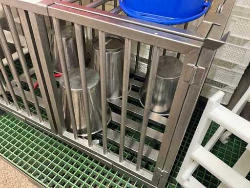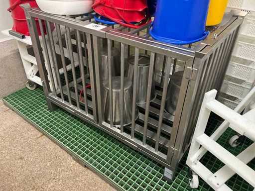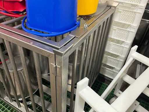 Equipped with 2 doors and a flip lid at the top, with a capacity of 4 stainless steel buckets.