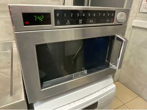 All-stainless steel professional microwave oven, designed for intensive use (restaurants, collective kitchens, etc.).