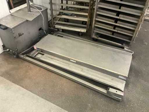 Lifting system consisting of 2 lift tables, each with a ramp of approximately 85 x 175 cm,