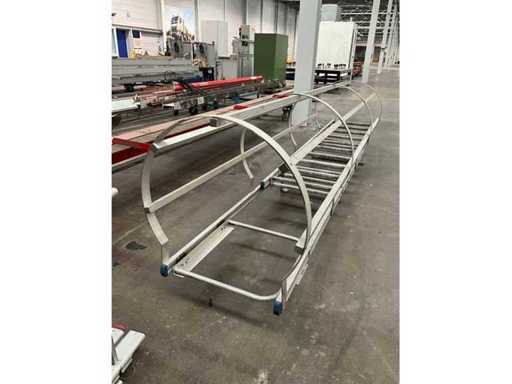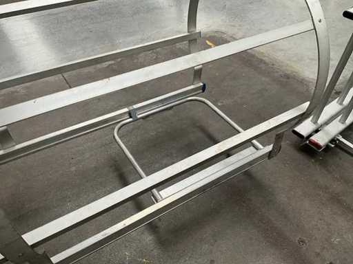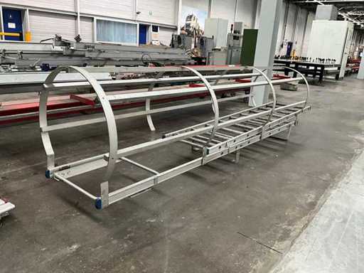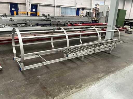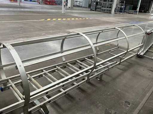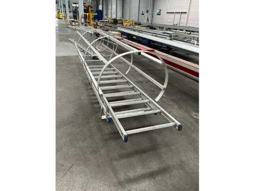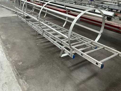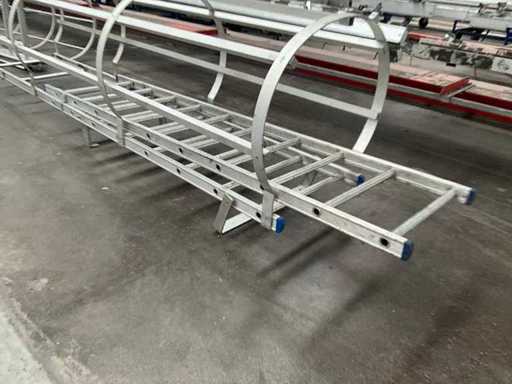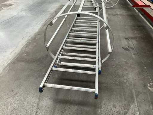 Equipped with 14 rungs and safety cage.