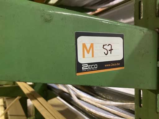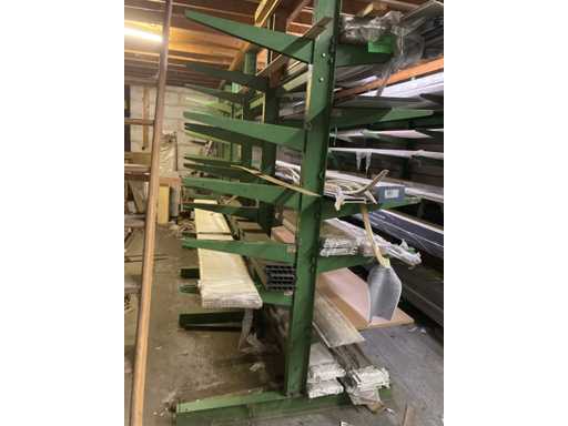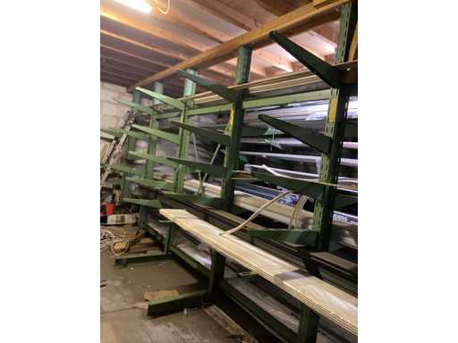 Warehouse racks for long objects: 12 uprights (248x130cm) and 109 beams/holders (60cm long without pins) - (content on photos not included)