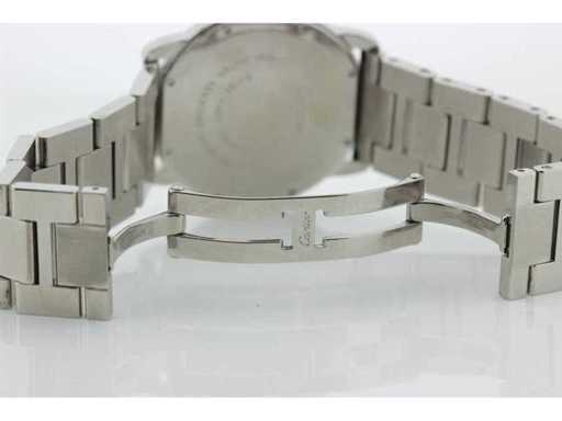 Cartier steel men's wristwatch, model Round Solo de Cartier, with white dial with steel strap in very good condition. Undamaged sapphire crystal. We expressly guarantee its authenticity, and you can have it verified by a Cartier retailer. Including original box and outer box. Serial Number: 729889PX Functions: Hour, minute and date Movement type: quartz Height: 6.6 mm Wrist circumference: 17 cm
