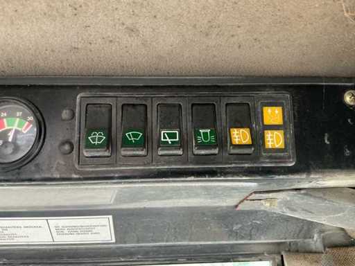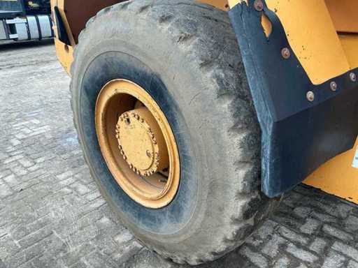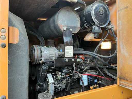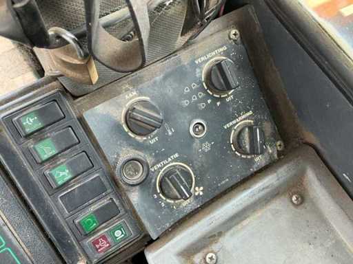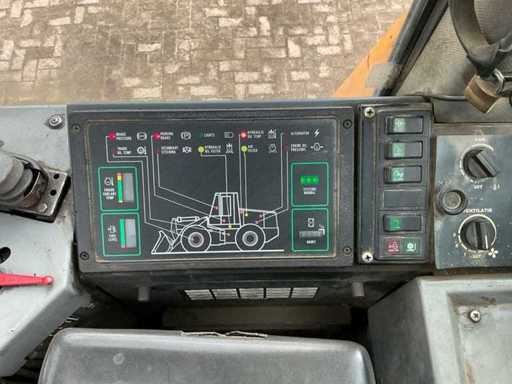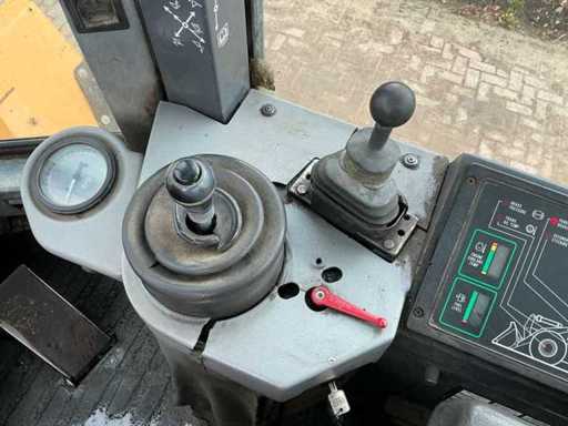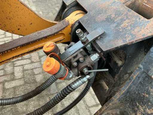 Equipped with: Hydraulic quick coupler, articulated steering, air conditioning, extra hydraulic function + leakage line, work lights all around, tow bar, boom suspension, beacon, radio, heater