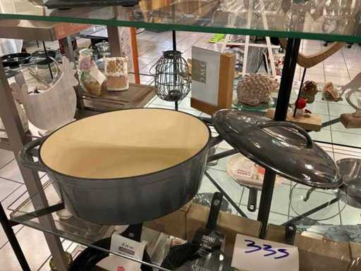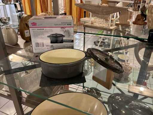 Consisting of 2x oval pot with lid (large approx 25 x 32 x H 13 cm and small approx 8 x 11 x H 4 cm) and 2x round pot with lid (large approx 24 x H 10 cm and small approx (13 x H 6 cm)
