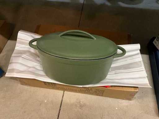 2 x round cast iron cooking pot and 1 x oval cast iron cooking pot
