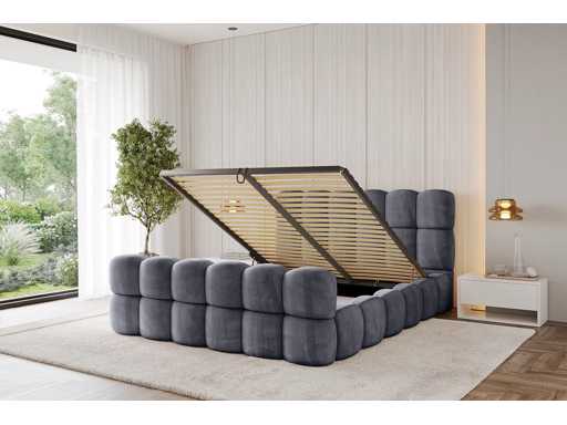 Chest bed with mattress and bed base - 200x200cm - dark grey