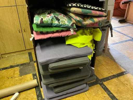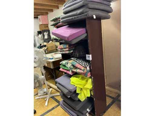 Size approximately 80 x 30 x 160 cm, equipped with 5 shelves complete with contents containing various seat cushions