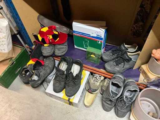 4 pairs of new shoes size 48 in original packaging, aerosols to waterproof, plastic covers for shoes, various shoes size 48, and so on....