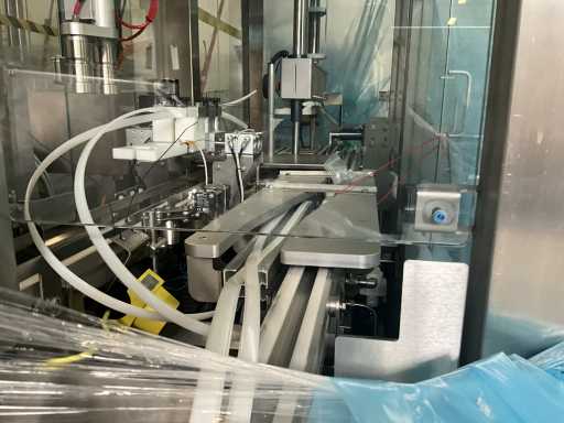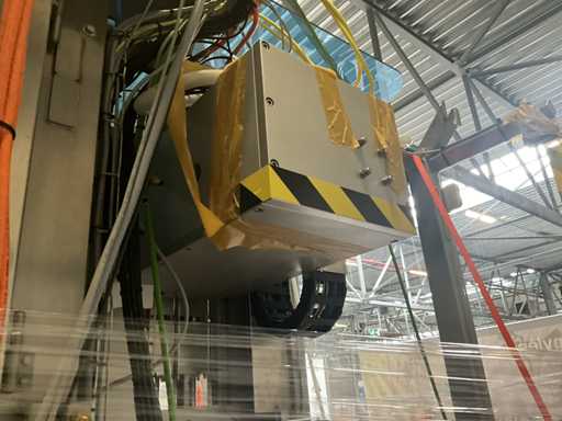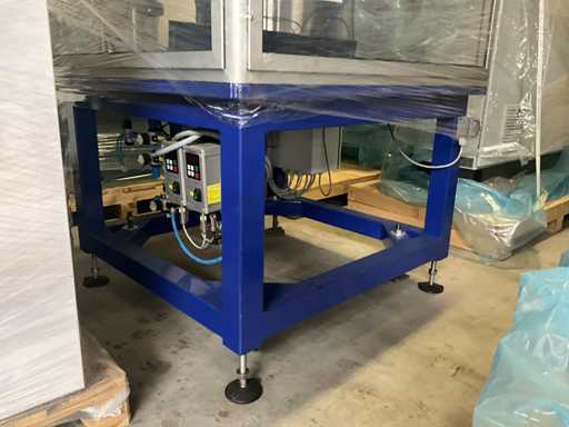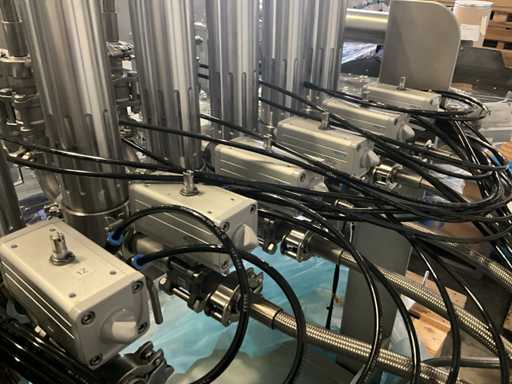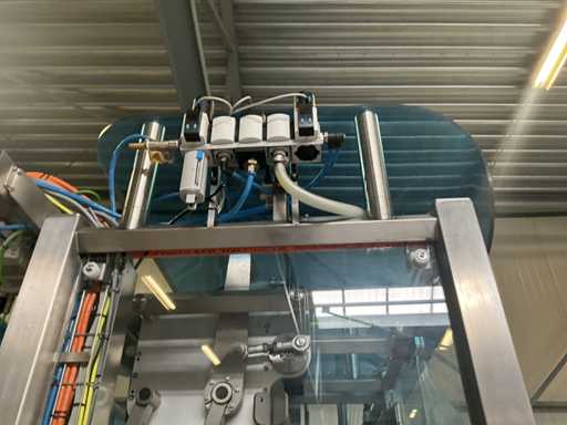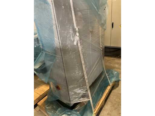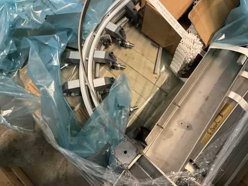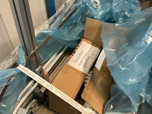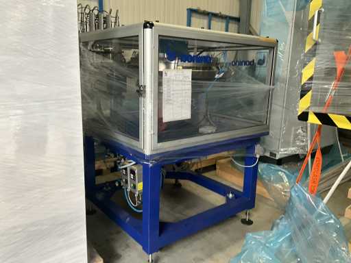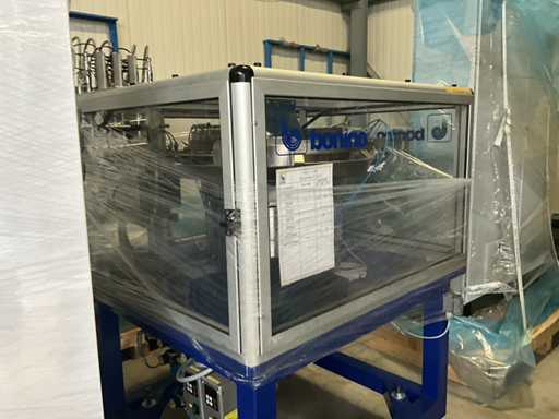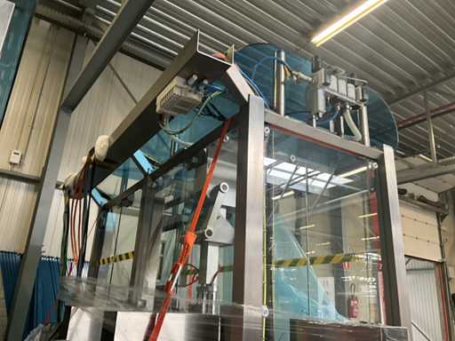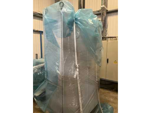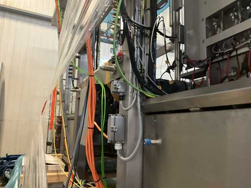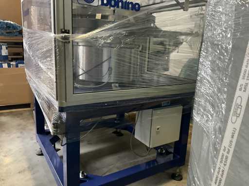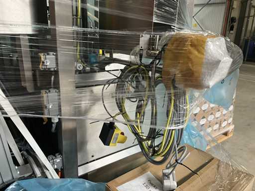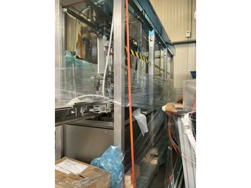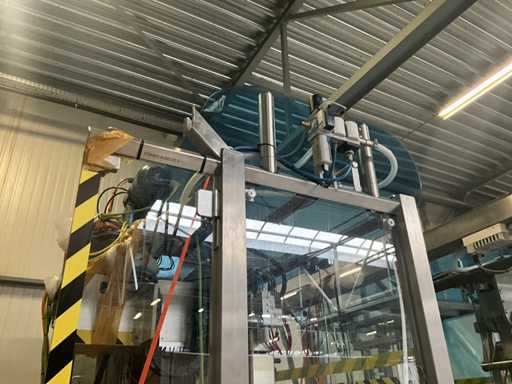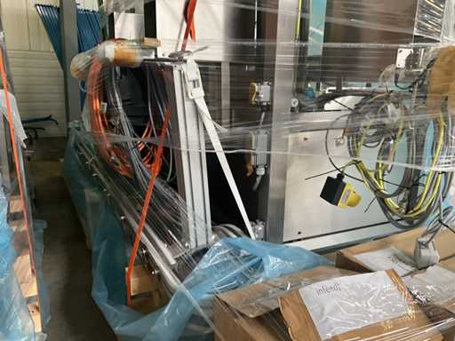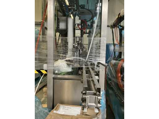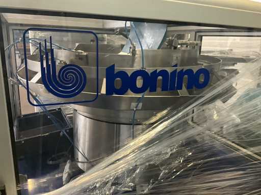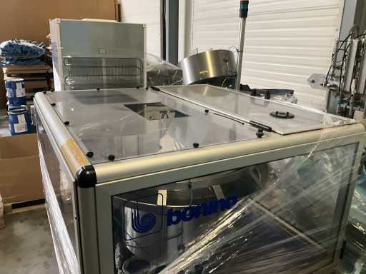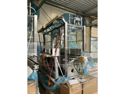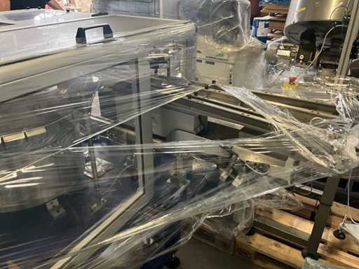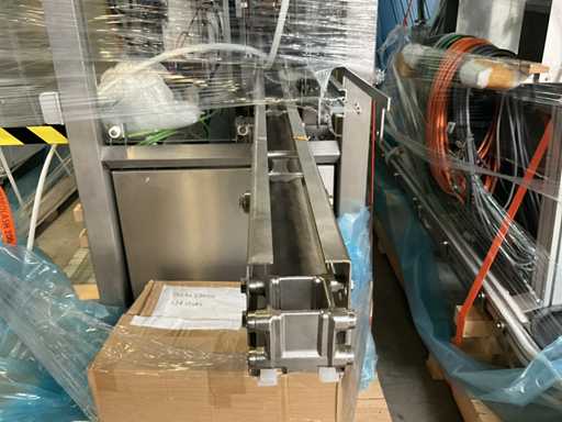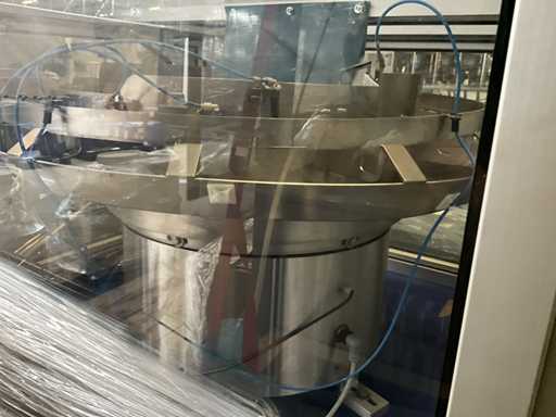 Consisting of 2 different conveyor belt frames wo of approx. 5 lpm and 3 lpm x. 140 cm and 260 cm high wed vv various glass doors, complete with feeder bowl BONINO attachment of approx. 120 x 120 x 160 cm, stainless steel pump unit, de-pocker unit, and extra conveyor belt and control/switch cabinet RITTAL of approx. 110 x 50 x 195 cm high.