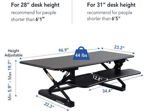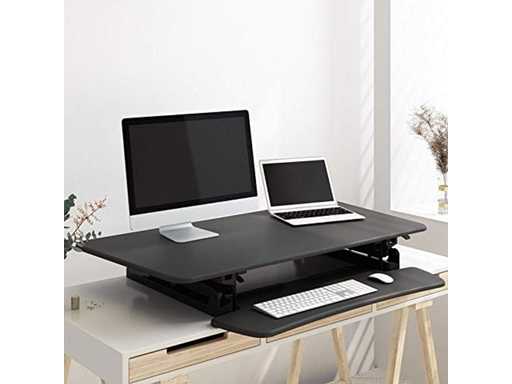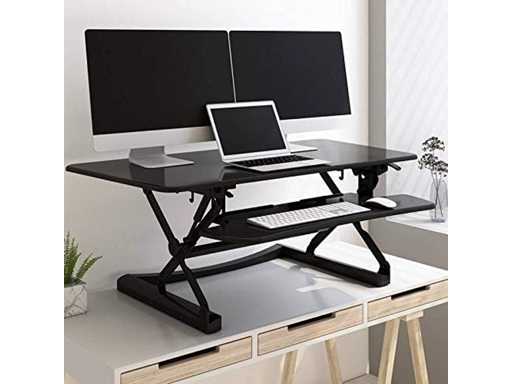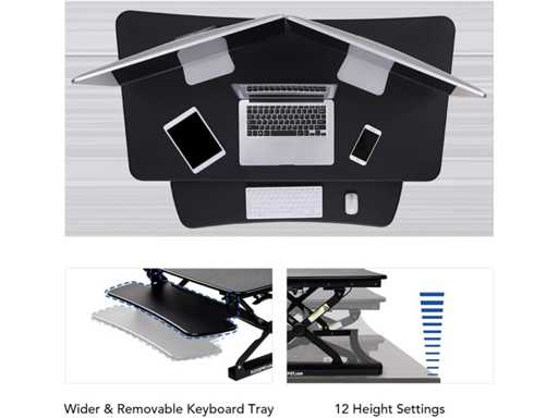 ? More spacious office space: The generous 119cm width supports two screens up to 27" (69cm) ? Smooth and Easy Adjustments: Our single-handle design makes it easy to safely adjust the height of the desk. You never need to use both hands or extra strength ? Straight up and down movement?: Our space-saving workstation rises and folds vertically, in its own footprint. There is no need to make the spatial arrangements that may be necessary with comparable products ? Quick Release Keyboard Tray: Our keyboard tray features a deeper work surface to accommodate a larger keyboard, mouse, and mouse pad, as well as a unique quick-release design so you can remove it quickly and easily when you're performing tasks that don't require a keyboard or mouse