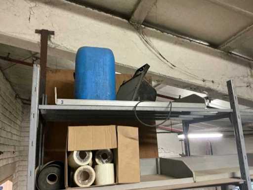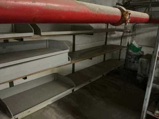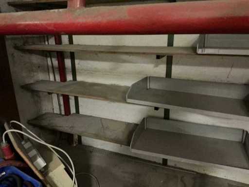 Includes metal shelf rack. Approximately 16 uprights and 60 shelves. Approximately 14 running meters.