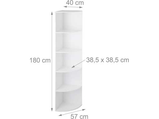 High-level corner shelf in white heavy-duty PB; Total dimensions HxWxD: approx. approx. 180x57x40cm