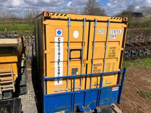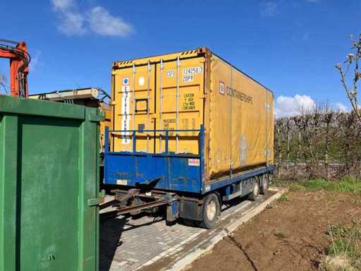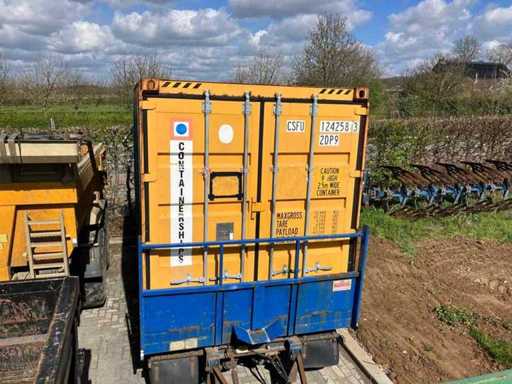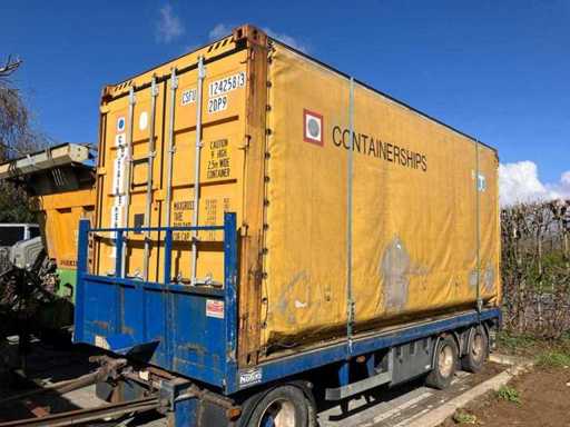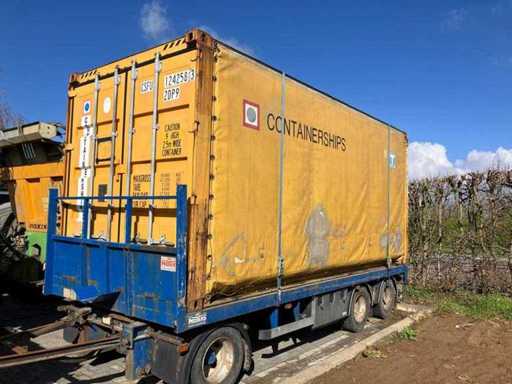 Equipped with: Curtainsider Swap Body Container (20 ft High Cube equivalent) equipped with sail sides (curtainsider), allowing loading and unloading both from the rear and from the sides, identification: CSFU 124258 3, type code: 2DP9, length: approx. 6.06 m (20 ft class, width: approx. 2.50 m, height: approx. 2.90 m (high cube version), capacity: approx. 33.1 m³, maximum total weight (gross): 30,480 kg, Own weight: 3,100 kg, payload: approx. 27,380 kg, Curtain side tarpaulin sides, rear doors with locking rods.